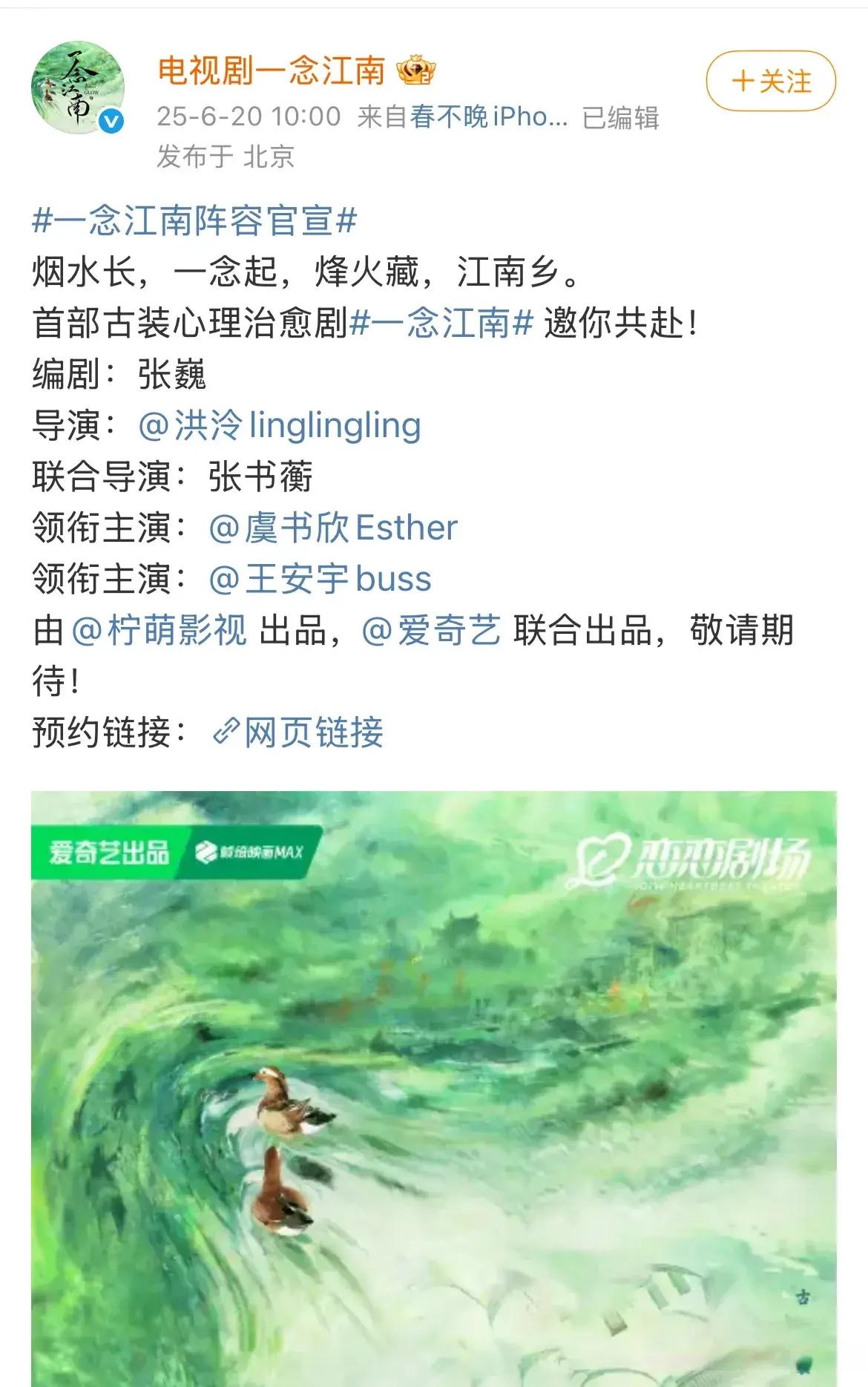 你期待《一念江南》吗?欢迎留言讨论。